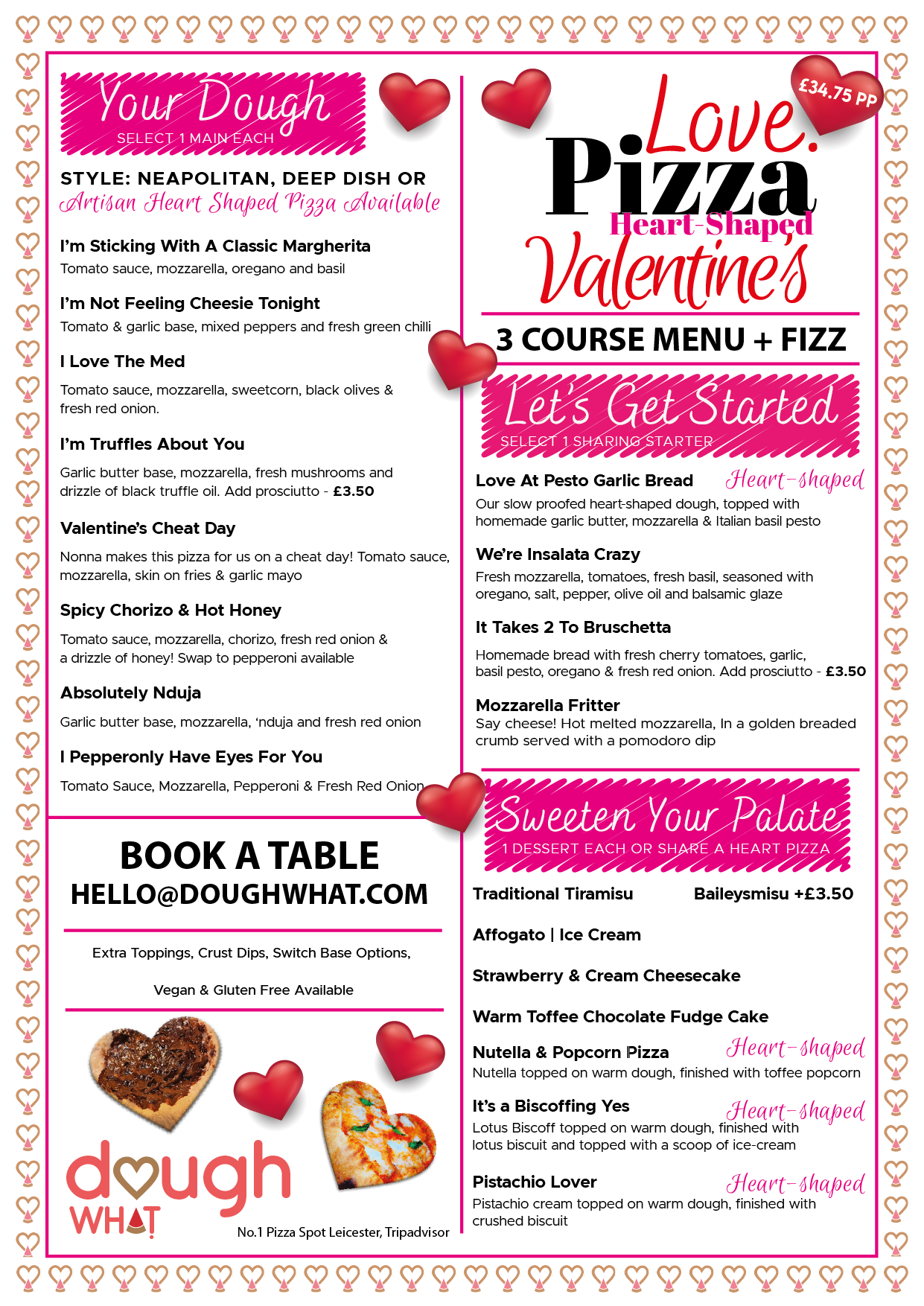 INCLUDES STARTER, PIZZA, DESSERT & WINE